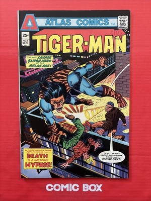 The product is a comic book from 1975, specifically from the Bronze Age of US Comics. Published by Atlas Comics, this issue is part of the Tiger-Man series, known for its action-packed stories and bold artwork. This vintage comic is a collector's item for fans of classic comic books, offering a nostalgic glimpse into the superhero genre of the 1970s.