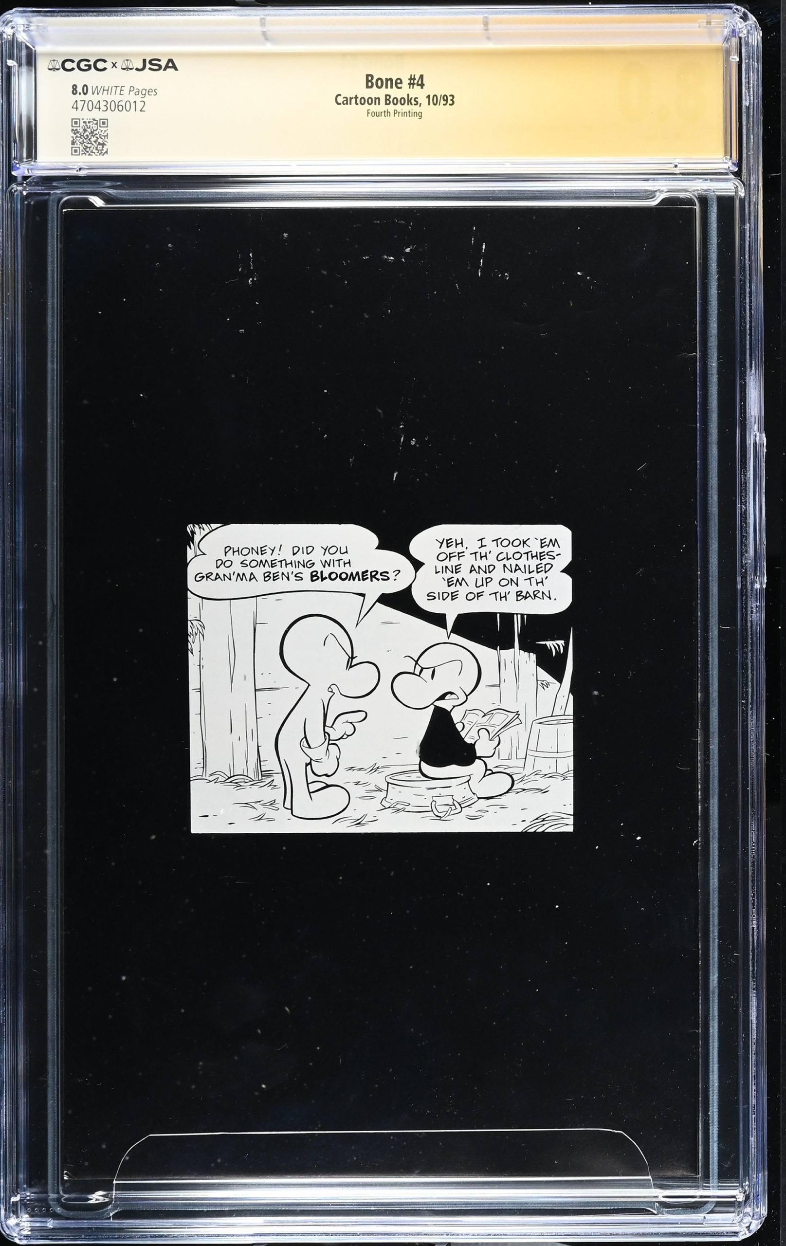 ![<b>CGC Graded [8.0] Cartoon Books Bone #4</b><br><p style="font-size:10px"> Signed by Jeff Smith - Fourth Printing</p> - Image 2](https://www.comic-box.co.uk/wp-content/uploads/2026/03/CGC4704306-012_REV-scaled.jpg)