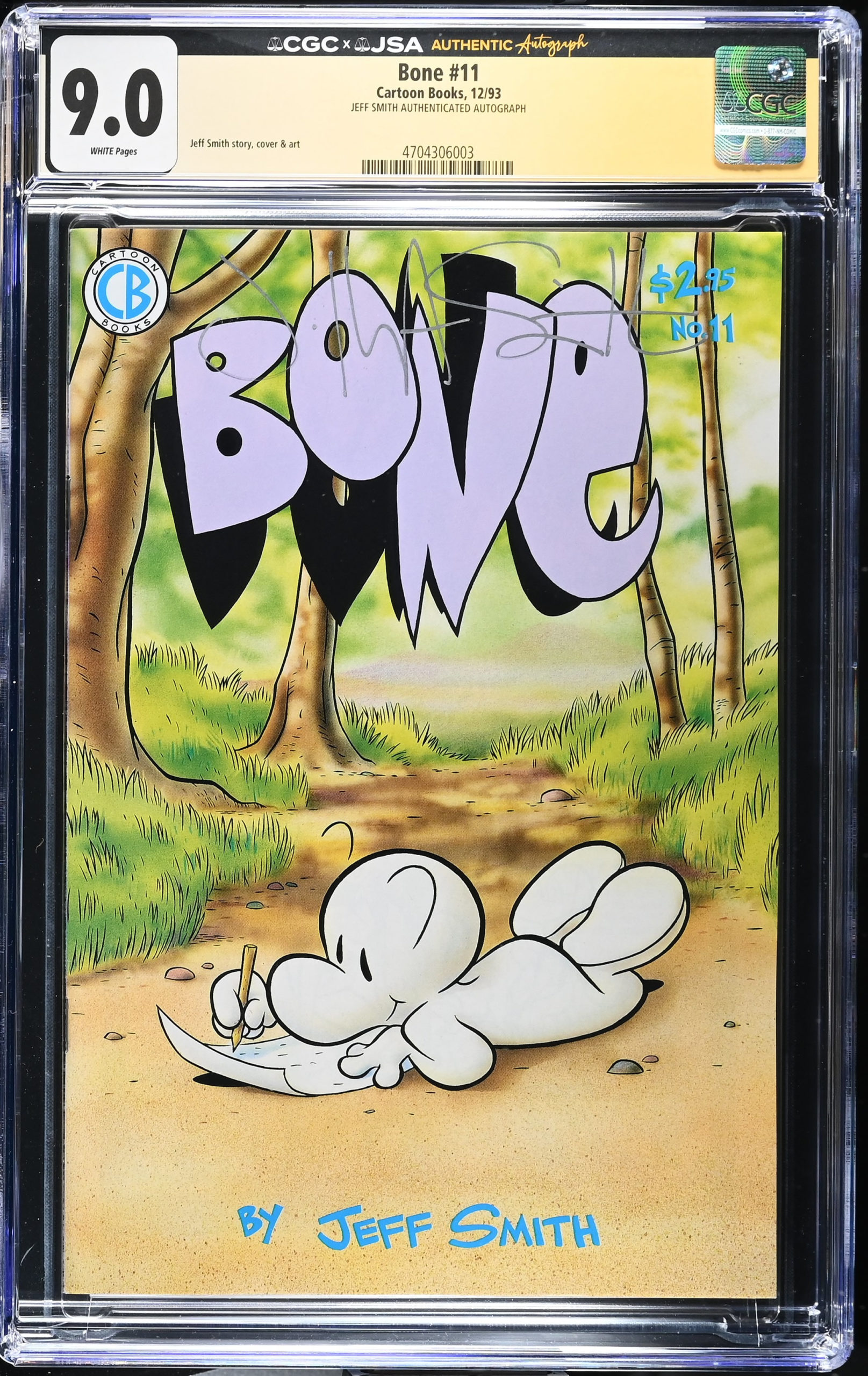 ![<b>CGC Graded [9.0] Cartoon Books Bone #11</b><br><p style="font-size:10px"> Signed by Jeff Smith - First Printing</p> - Image 2](https://www.comic-box.co.uk/wp-content/uploads/2026/03/CGC4704306-003_REV-scaled.jpg)