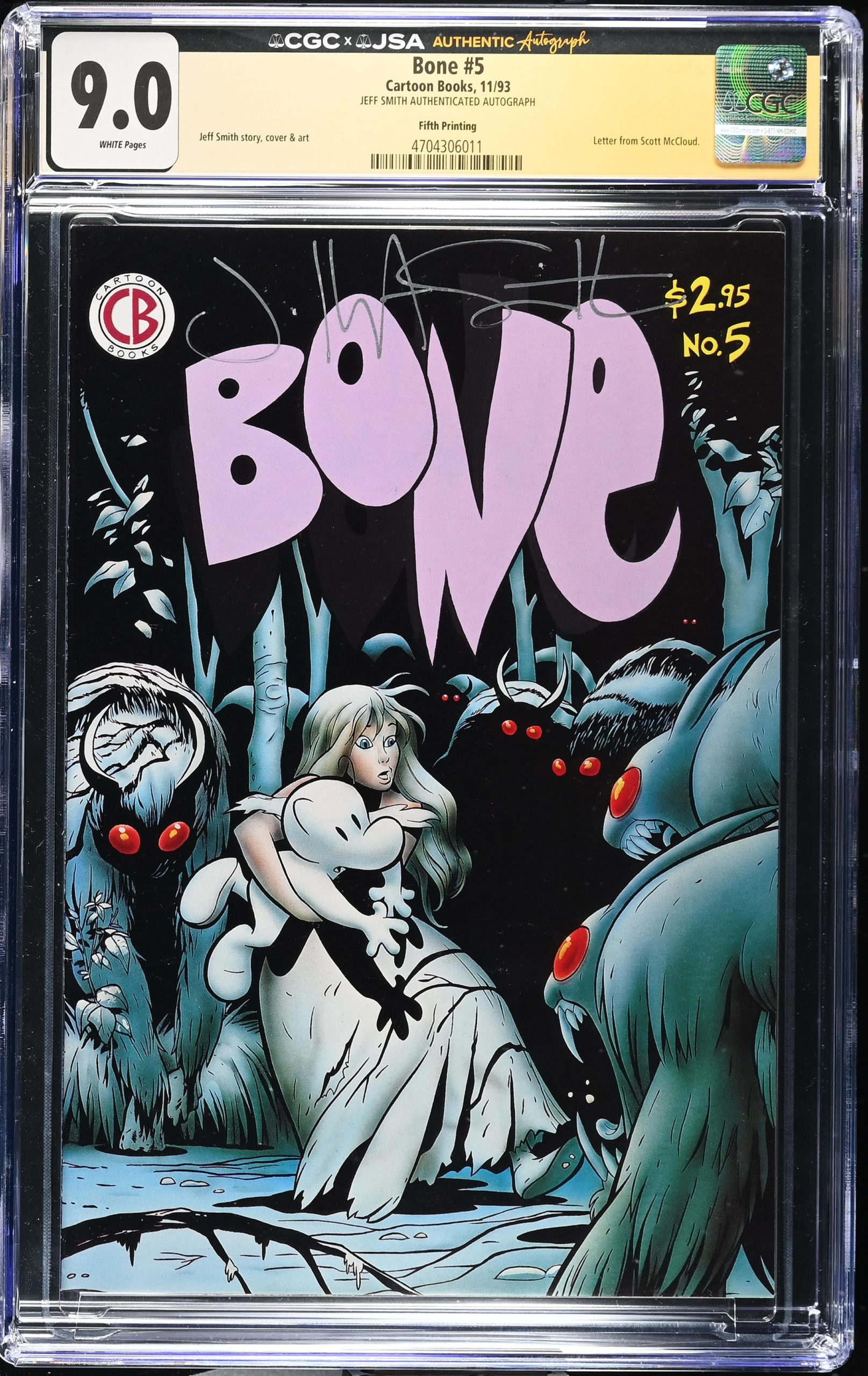 ![<b>CGC Graded [9.0] Cartoon Books Bone #5</b><br><p style="font-size:10px"> Signed by Jeff Smith - Fifth Printing</p> - Image 2](https://www.comic-box.co.uk/wp-content/uploads/2026/03/CGC4704306-011_REV-scaled.jpg)