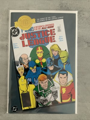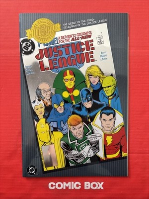 The DC Comics Justice League #1 2000 Millennium Edition Chrome Variant is a highly sought-after collectible comic book published by DC Comics in 2000. This edition boasts a shiny chrome cover, adding a unique and eye-catching element to the traditional US Comics series. As part of the Justice League series, this comic features the iconic superheroes in a thrilling storyline that captures the essence of the DC Universe. With its limited availability and special chrome cover, this comic is a must-have for any avid collector or fan of superheroes.