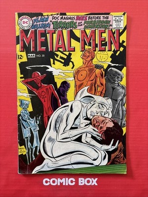 The product is a DC Comics Metal Man #30 comic from 1967, part of the Silver Age series published by DC Comics. This vintage comic fits within the tradition of US Comics and features a classic Metal Man storyline set in the Silver Age era. With its nostalgic appeal and historical significance as a part of the Silver Age series, this comic would be a valuable addition to any comic book collection for fans of US Comics and DC Comics in particular.