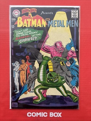 The product is a comic book from DC Comics titled "The Brave & The Bold Presents Batman And Metal Men #74" from the Silver Age era, published in 1996. This variant type is a Newsstand Variant and features the character Storm in the US Comics tradition within the DC Universe. The comic is part of the Batman: Detective Comics series by DC Comics.