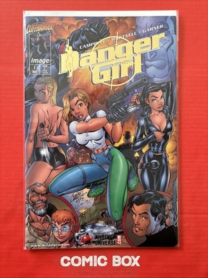 The product is a variant cover of Image Comics' Danger Girl #1 featuring gold foil and artwork by J. Scott Campbell. This exclusive comic book is part of the Danger Girl series, known for its action-packed storytelling and appealing artwork. As a variant cover, it offers a unique and eye-catching design that sets it apart from the standard edition, making it a sought-after collectible for comic book fans and collectors.