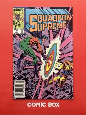 The product is a rare Newsstand Variant of Marvel Comics Squadron Supreme #3 from 1985, during the Bronze Age of comics. This key issue features characters from the US Comics tradition, specifically within the Star Wars Universe published by Marvel Comics. The genre of the comic is war, and it was manufactured in South Africa. This collectible item is a valuable addition to any comic book enthusiast's collection, showcasing a piece of comic book history from the 1980s.