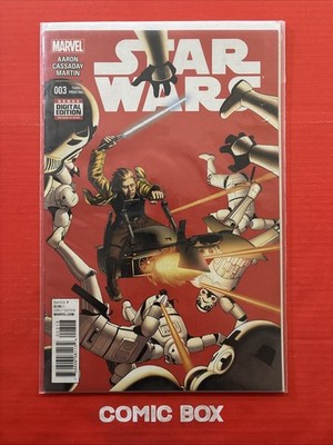 The product is a third printing variant of Marvel Comics' Star Wars #3, published in 2010. Being a part of the US Comics tradition, this comic belongs to the Marvels series and is set in the Star Wars universe. With a focus on war genre, this comic is a must-have for fans of the popular franchise.