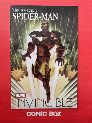 The product is a Marvel Comics The Amazing Spider-Man #628 Invincible 2010 IronMan Design Variant. This comic book from 2010 features a unique cover design inspired by IronMan. It is part of the US Comics tradition and belongs to the series titled The Amazing Spider-Man, published by Marvel Comics. The comic likely includes appearances by iconic characters such as Spider-Man and possibly Anti-Venom, offering readers a thrilling and action-packed story within the Marvel Universe.