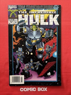 The product is a rare Newsstand Variant of Marvel Comics' The Incredible Hulk #413, published in 1993. This comic book from the US Comics tradition features the iconic character, The Hulk, in a story set during the Trojan War. A sought-after collectible for fans of comics and graphic novels, this variant offers a unique glimpse into the world of Marvel Comics from the early 1990s. With its distinctive cover and limited availability, this comic is a valuable addition to any comic book collection.