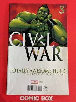 The Marvel Comics Totally Awesome Hulk #5 Civil War Variant from 2015 is a sought-after collectible in the world of US Comics. Published by Marvel Comics, this variant edition adds a unique twist to the popular series, featuring a special cover and storyline related to the Civil War. Fans of the Totally Awesome Hulk series will appreciate this rare and valuable addition to their comic book collection, showcasing the imaginative and dynamic world created by Marvel Comics.