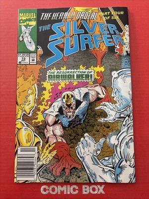 The Silver Surfer #73 from 1992 is a rare Newsstand Variant featuring Part 4 of the 6-part storyline "The Herald Ordeal." This comic book, part of the US Comics tradition, focuses on the character Silver Surfer and is part of the series titled "Heralds." As a sought-after edition, it appeals to comic book collectors looking for unique variations of popular titles from that era.